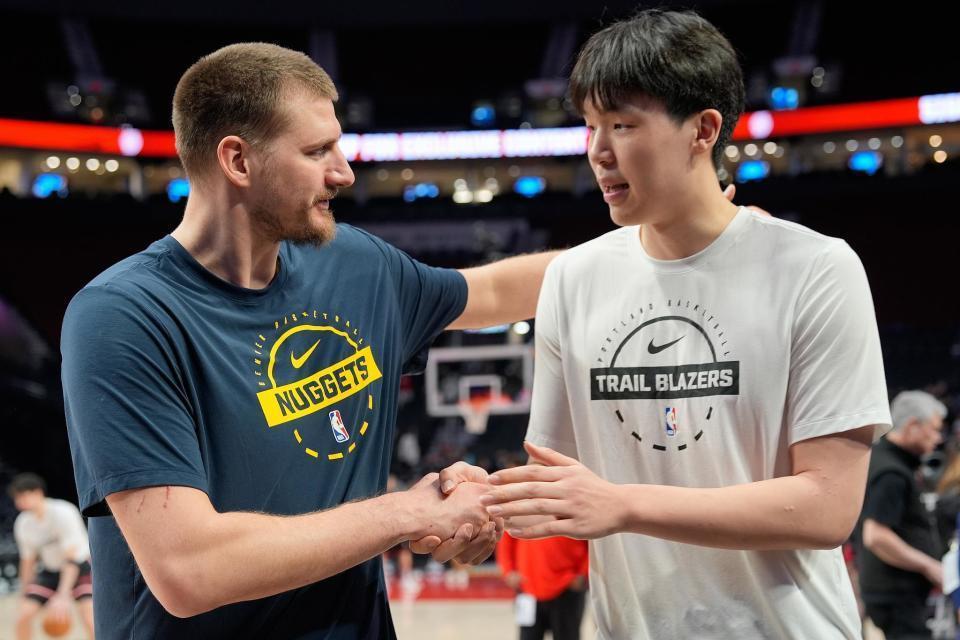赛后谈及自己对约基奇说了什么,杨瀚森用英文回答道:“我说我不是想真的亲你,在中国这是我很敬重你的意思,因为我很喜欢你。”